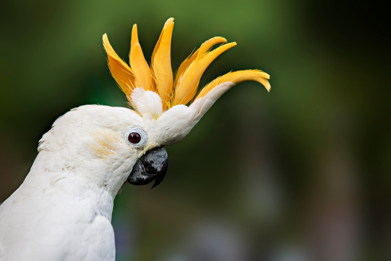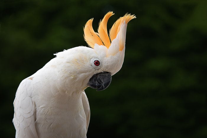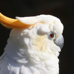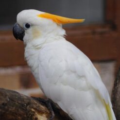 Citron-crested cockatoo is a medium-sized cockatoo with an orange crest, dark grey beak & pale orange ear patches. The underside of the larger wing and tail feathers have a pale yellow color.